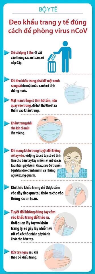 Đeo khẩu trang chỉ chặn được virus lỡ khi một người bệnh nào đó ho hoặc nói chuyện văng nước miếng vào miệng hoặc mũi mình.