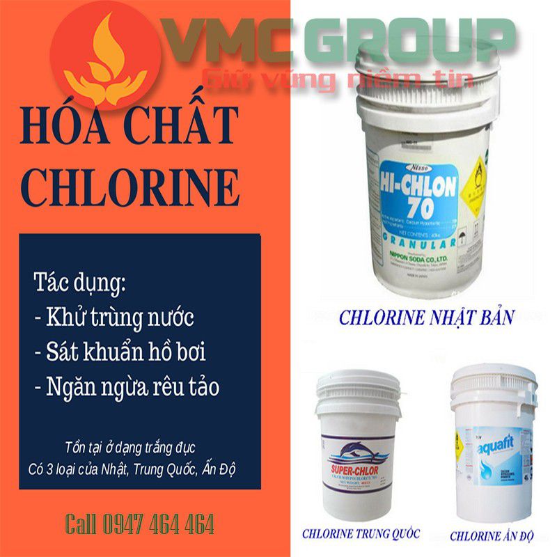 - Công dụng: làm trong nước, tiêu diệt vi khuẩn gây ô nhiễm, ngăn ngừa sự phát triển của rêu tảo. Có tác dụng phụ làm hạ nồng độ pH (vì vậy cần lưu ý kiểm tra nồng độ pH trước khi dùng clo).