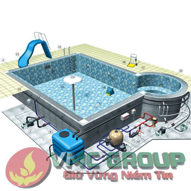 Ngoài ra trong suốt quá trình sử dụng bể, hệ thống lọc cũng liên tục làm việc thực hiện quy trình lọc – trả tuần hoàn để nước bể luôn luôn được trong ,sạch, an toàn cho người sử dụng.