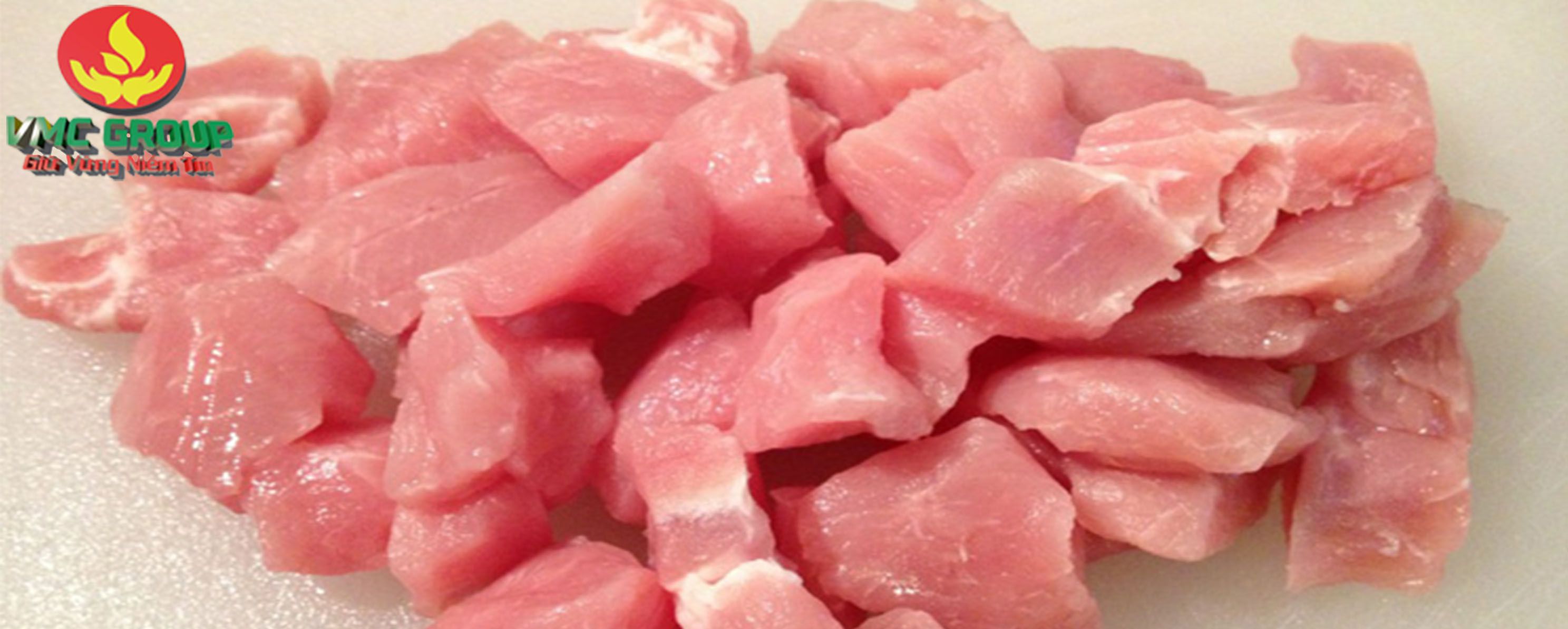 Thịt: Thịt mua về lóc gân bằng tay. Sau đó cắt nhỏ (4cm x 4cm) rửa sạch rồi cho vào tủ đông lạnh đến khi đạt <5 độ C