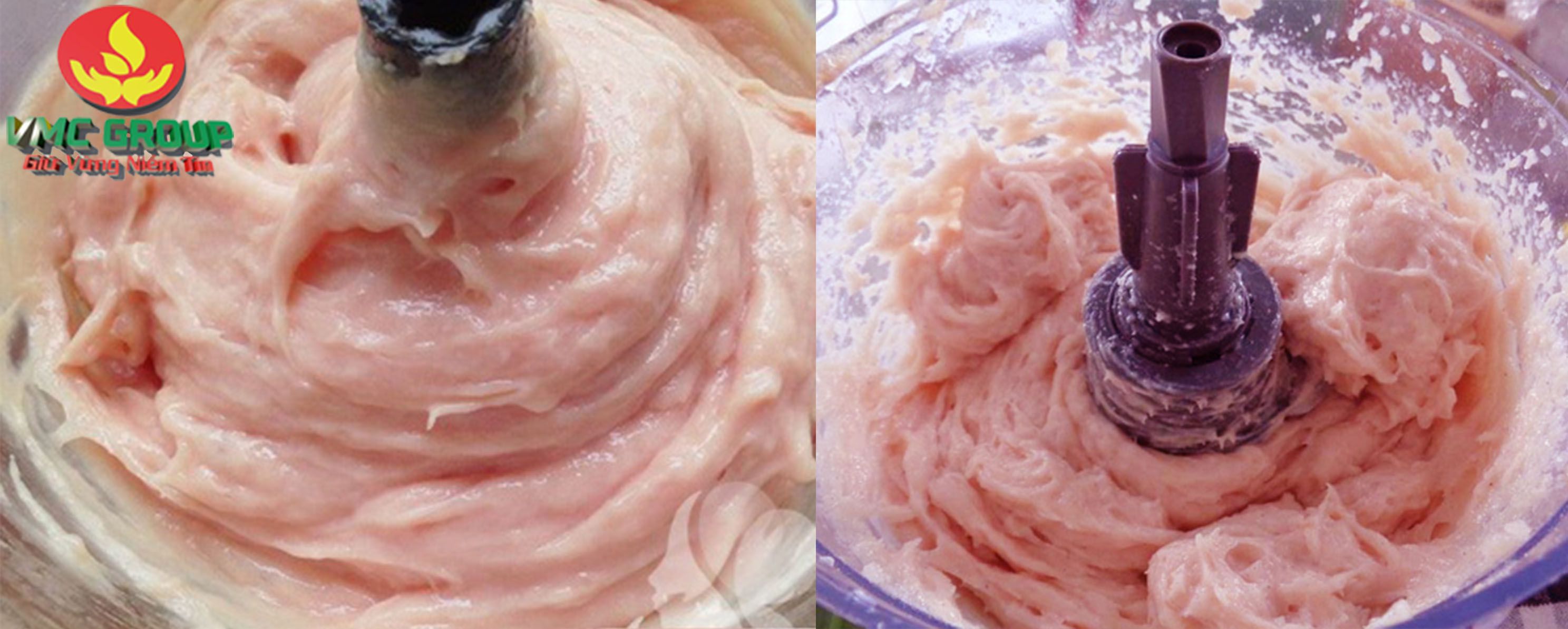 2. Tạo độ dẻo, liên kết thịt và mỡ, tái tạo cấu trúc mới cho thịt yếu, thịt đông lạnh: VMC MP (Từ 3-5g/kg sản phẩm. Cho vào quá trình xay chậm)