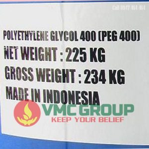 POLY ETHYLENE GLYCOL 400 (PEG 400)-Khả năng bốc hơi:. -Màu: chất lỏng không màu. -Mùi: giống mùi glycol. -Trạng thái: lỏng. -Tan Trong nước: tan trong nước. -Tan trong dung môi hữu cơ khác: axeton, rượu, benzen, glycerin, glycols, và hydrocacbon thơm và hòa tan nhẹ trong hydrocarbon aliphatic. |
