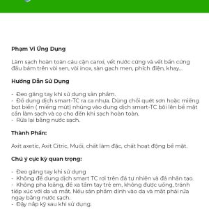 Thông số kỹ thuật của SMART TC-TẨY SẠCH SEN VÒI INOX chi tiết như sau: